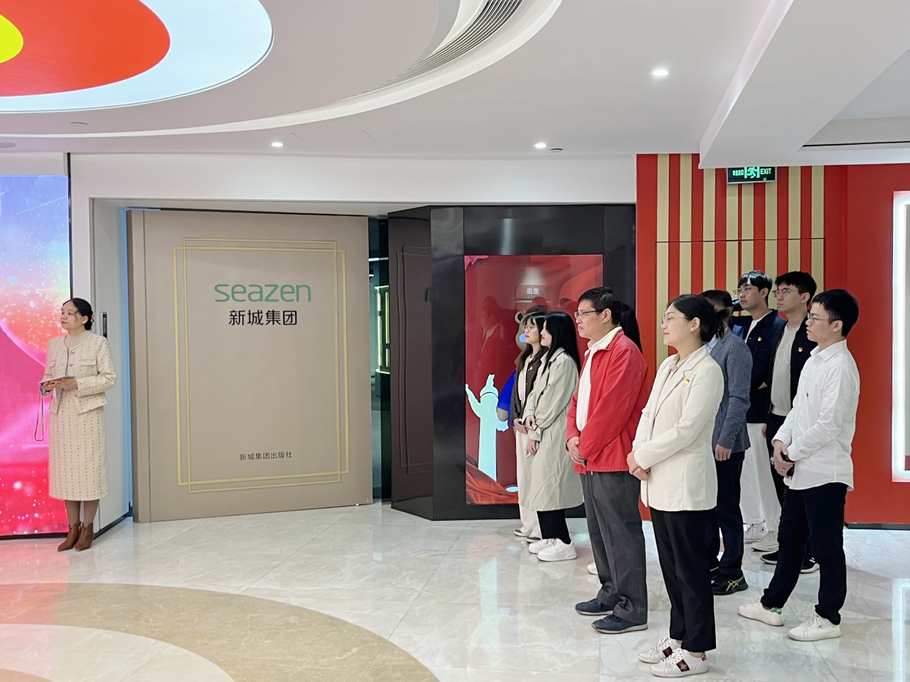 8日上午,上海财经大学经济学院师生联合一支部师生到达新城集团,与新城悦党支部汇合,在“幸福党建”展厅聆听新城控股集团的发展历程,深入了解了新城控股集团以高质量党建引领高质量发展的实践。