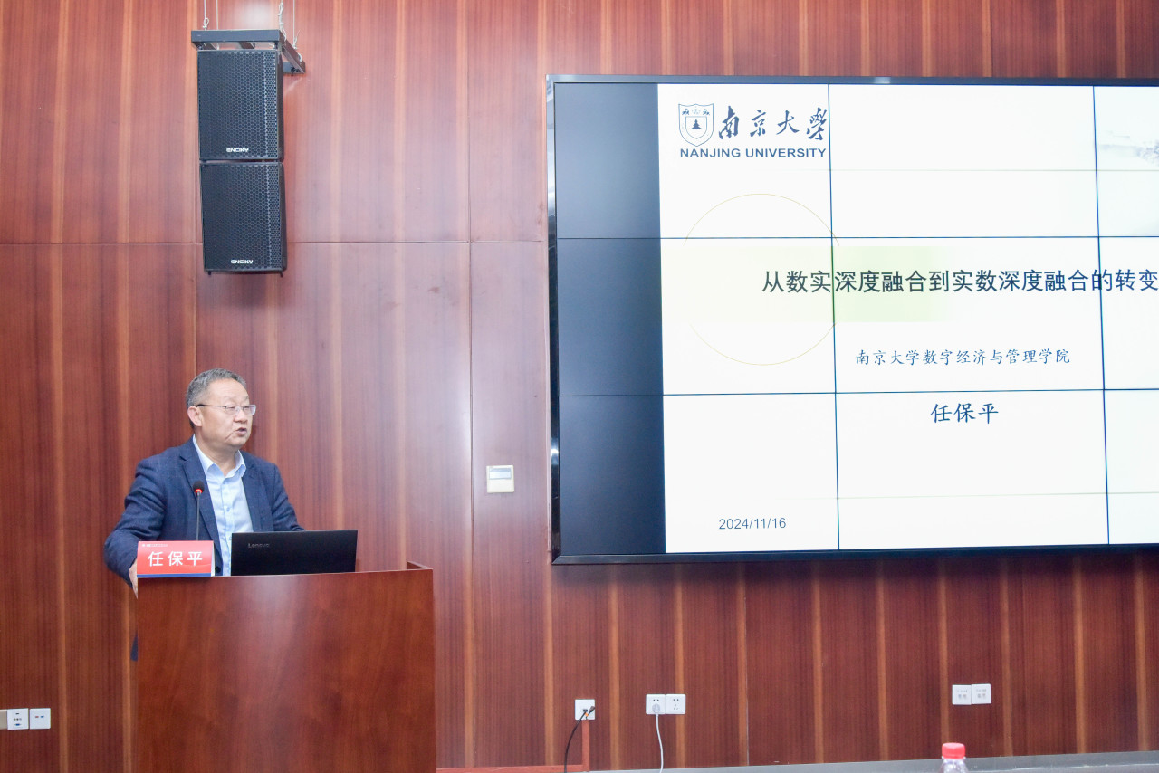 南京大学数字经济与管理学院院长,教育部国家级人才项目特聘教授任保平作题为《从数字经济与实体经济融合转向实体经济与数字经济融合》的主旨报告。他深刻阐释了从数实深度融合到实数深度融合转变的重要意义,并系统论证了如何从数实深度融合向实数深度融合转变、如何做到实体经济数字化和数字经济实体化以及两者如何结合促进实体经济的新质化。
