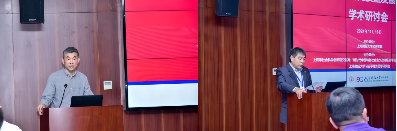 作为2024年度政治经济学“系列学术研讨”的一项重要活动,为进一步增强政治经济学学术交流互鉴,凝聚政治经济学学科发展共识,推动中国特色社会主义政治经济学理论体系和话语体系的高水平建构和高质量发展,11月16日,上海财经大学经济学院在辅楼402会议室举办了主题为“健全推动经济高质量发展体制机制”的政治经济学学术研讨会,来自北京大学、清华大学、中国人民大学、复旦大学、南京大学、南开大学、武汉大学、厦门大学、西南财经大学、上海外国语大学、上海对外经贸大学、上海社会科学院、华东师范大学、上海财经大学等14所国内一流院校,以及来自《学术月刊》《上海经济研究》《上海财经大学学报》编辑部的30余位专家学者参与了研讨交流。上海市社会科学创新研究基地“新时代中国特色社会主义政治经济学话语体系创新研究”基地、上海财经大学习近平经济思想研究院、《上海财经大学学报》编辑部参与协办本次会议。