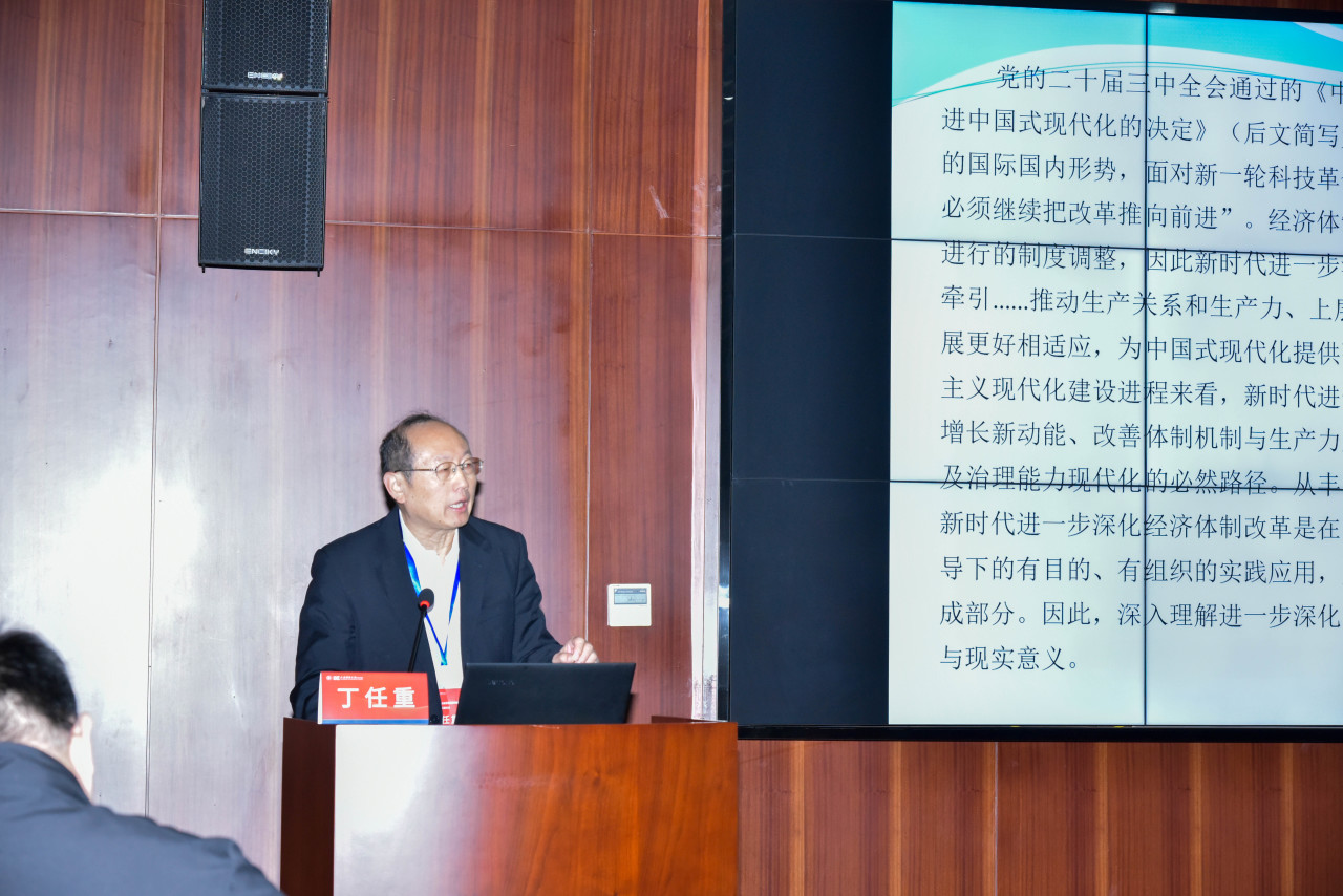 四川师范大学原党委书记、校长,国务院学位委员会理论经济学学科评议组成员,西南财经大学丁任重教授作题为《新时代进一步深化经济体制改革的战略特征》的主旨报告。他深入分析了新时代中国经济体制改革的战略特征,表明深化改革是推动中国式现代化的必由之路,是解放和发展生产力、完善社会主义市场经济体制机制、推进国家治理体系和治理能力现代化的必然路径,并指出新时代经济体制改革的具体任务。