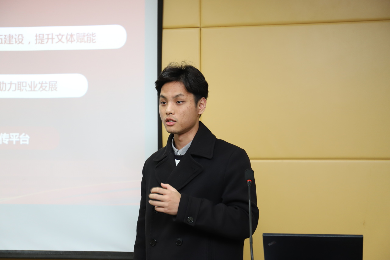 马应炜同学聚焦于职业发展和文体活动两个方面,重点介绍了我院“生涯规划月”和“就业服务月”等特色活动,并结合丰富的实例,对文体活动的开展情况进行介绍。