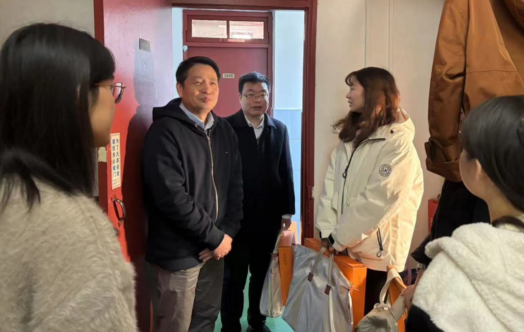 党委副书记、纪委书记金晓茜与研究生辅导员王佳瑞前往三门路研究生公寓慰问学生,发放冬季御寒物资,并与学生亲切交谈,对学生的学习、生活、实习等方面进行了详细的了解,嘱咐学生把握好在校时间,为明年秋招做充分准备。同时,遇到困难及时向学院反馈,学院会为大家做好服务保障工作。