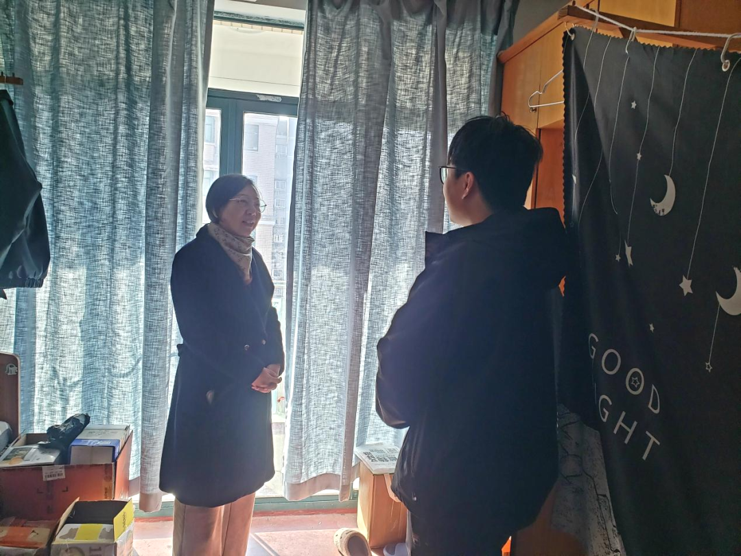 党委书记林立国、副院长燕红忠和本科生辅导员黄优一行来到国定路5号楼宿舍,了解同学们在学校的学习生活情况,叮嘱同学们无论在学习上还是生活上,遇到任何困难或问题,都及时反馈给学院,学院会竭尽全力为大家提供支持与帮助。