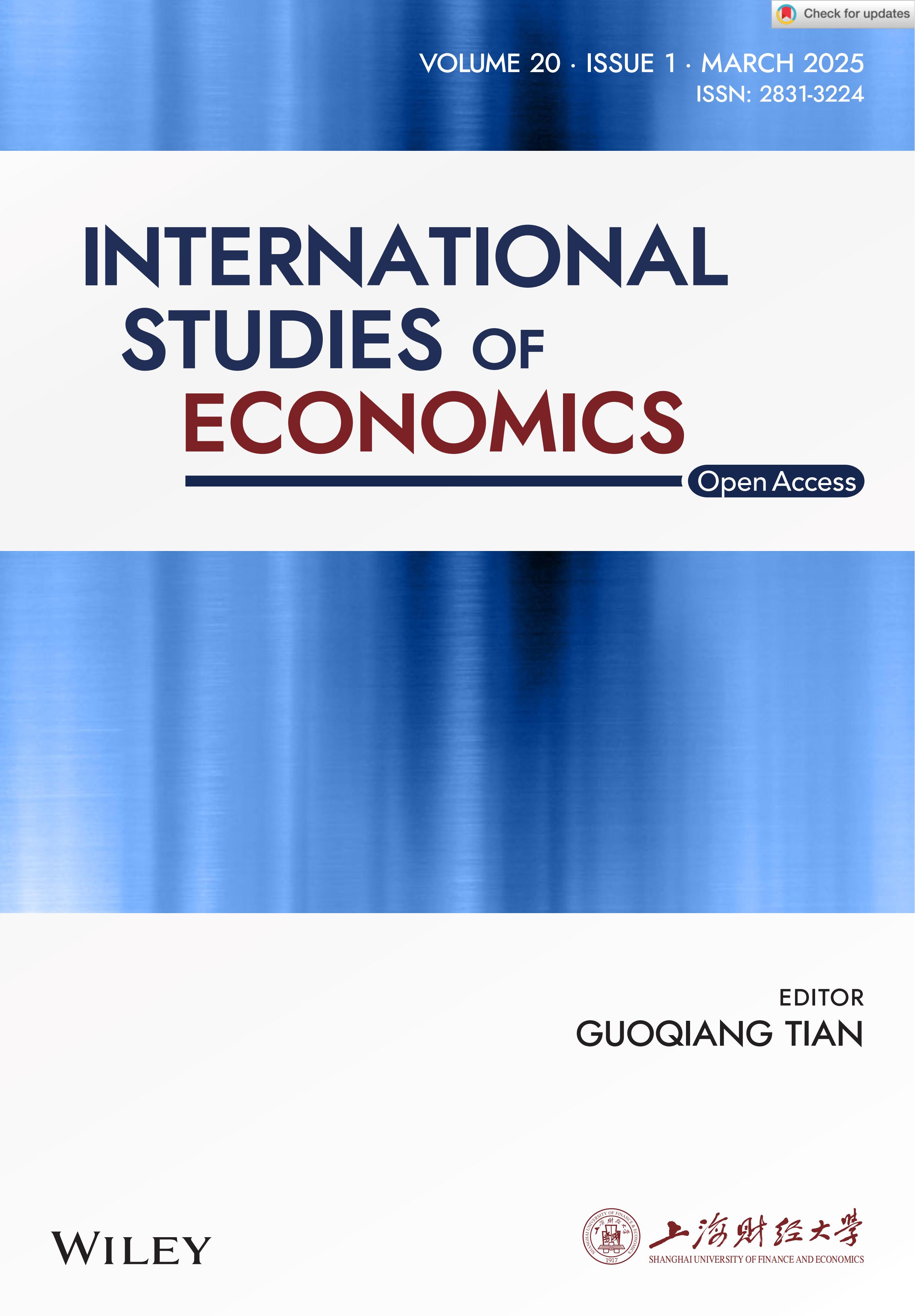 International Studies of Economics (ISE) is a general interest open access journal in economics published by Wiley on behalf of the School of Economics, Shanghai University of Finance and Economics. Issued quarterly, the journal is indexed in more than 10 databases including DOAJ, EBSCO-BSU, EconLit, ESCI, Gale, Google Scholar, ProQuest, RePEc and SCOPUS.