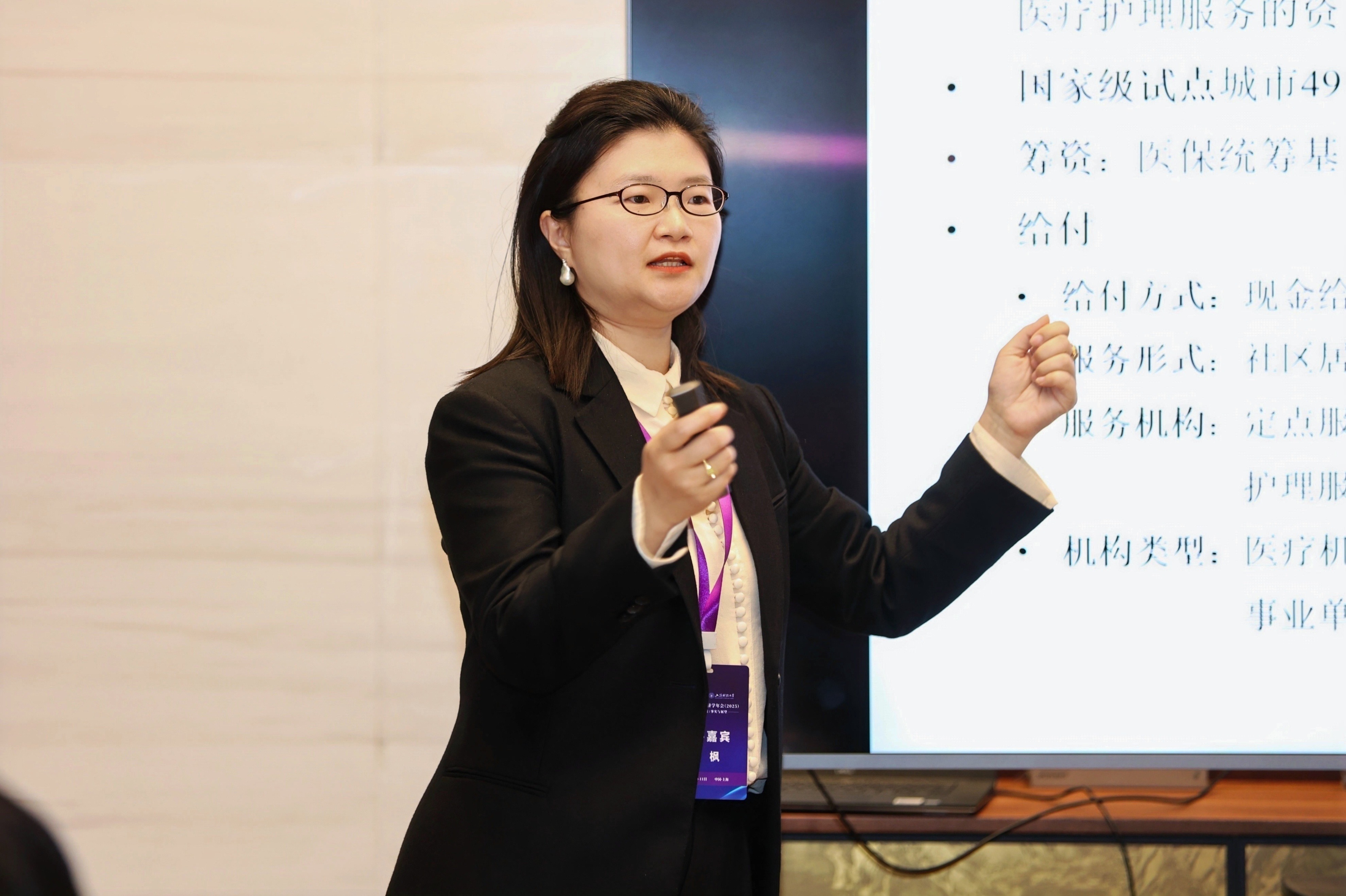 上海财经大学经济学院黄枫教授作题为《长期护理保险如何影响护理服务人员需求?——来自在线招聘数据的证据》的报告。在人口老龄化趋势日益显著,老年人护理服务供需矛盾日益突出的背景下,她通过分析长期护理保险试点政策的影响,探讨了保险扩展后,护理服务市场如何调整其劳动力雇佣策略以应对需求增长的问题。研究利用在线招聘数据,并结合双重差分法对政策效果进行科学分析,实证结果显示,在长期护理保险政策实施后,试点城市对护理人员的需求显著增加,同时服务提供者确实提高了对护理人员技能的要求。然而,研究并未发现服务提供者在薪酬福利方面有显著提升。