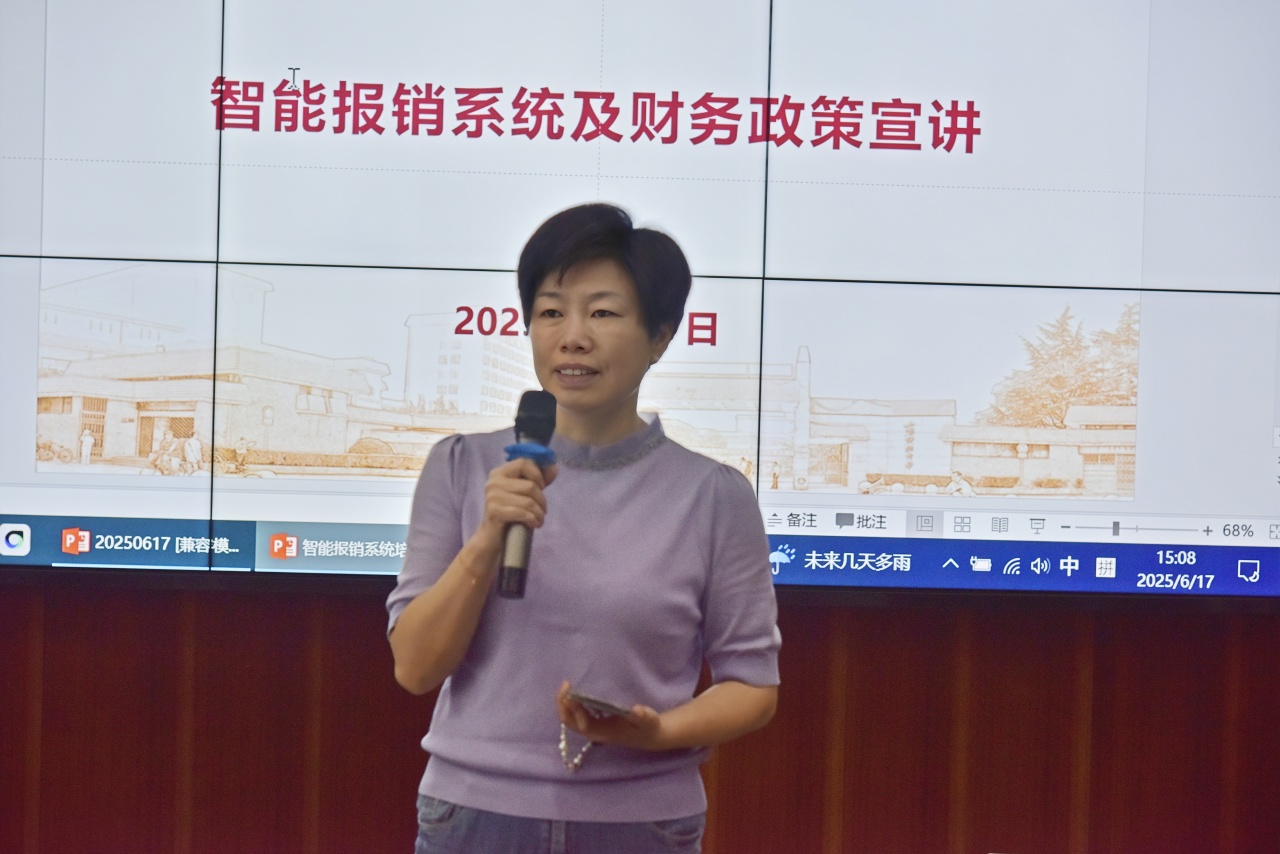 为提升经费使用效率,规范财务报销流程,6月17日,学校财务处走进经济学院开展“智能报销系统和财务政策”宣讲会,为教职工讲解新智能报销系统上线后的相关操作方法、常规报销和科研经费报销注意事项。财务处处长林华、副处长朱安洁;经济学院党委书记林立国,副院长陈媛媛、燕红忠、冒佩华,党委副书记、纪委书记金晓茜出席。财务处骨干成员及经济学院全体教职工参会交流。本次宣讲由经济学院陈媛媛副院长主持。