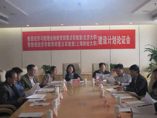 4月27日上午,2011年教育部立项建设的我院联合高等研究院、统计与管理学院共同申请的数理经济学教育部重点实验室建设计划论证会在北京举行。由中国科学院数学研究所丁伟岳院士担任组长,中国科学院汪寿阳研究员、天津大学张维教授、南开大学郭军义教授、中国人民大学汪昌云教授、北京大学张平文教授、山东大学吴臻教授担任成员的专家组,以及教育部科技司明媚副处长对重点实验室建设计划进行了论证。丛树海副校长、科研处副处长陈正良、我院常务副院长胡永刚以及实验室建设团队代表共10余人出席了论证会。