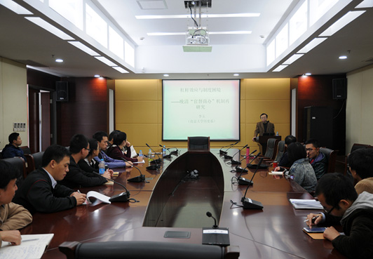 2013年11月15日上午,南京大学历史学系李玉教授做客上财经济史学讲坛第九讲,在经济学院710会议室为财大师生做了题为“杠杆效应与制度结构——晚清‘官督商办’机制再研究”的讲座。