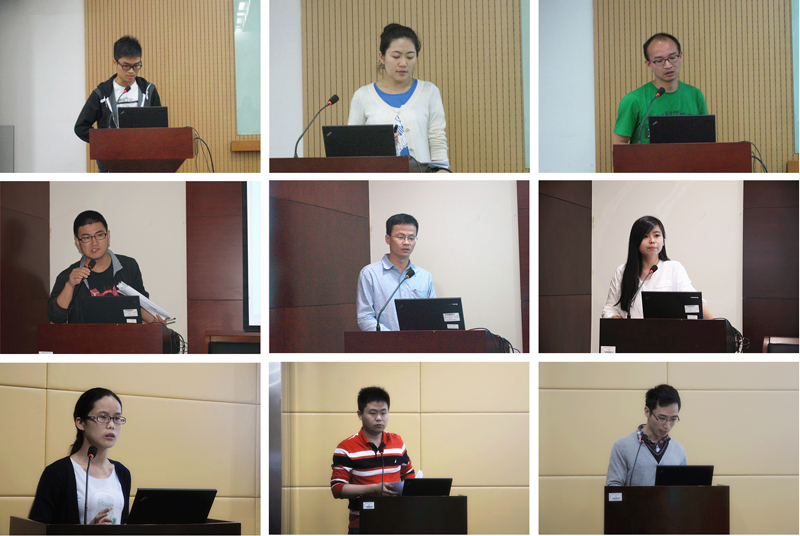 经济学院常务副院长龚关、副院长常进雄与获奖同学合影留念 中期博士宣讲会至今已连续举办4期,成为我院提升博士培养质量的重要一环。16日经济学院、高等研究院全体教师放弃休息日,早早来到会场;行管人员也已提前完成各项准备工作,只见桌面上整齐摆放着评分表、报告论文材料和报告人名单。 一切就绪,7点55分,2015年经济学院中期博士宣讲会准时举行。今年宣讲会共分3个会场同时举行,每个会场都安排有政治经济学系、经济史学系、经济学系和数量经济学系的教师和报告人,让各个专业领域的老师从不同视角对博士生论文进行“会诊”。相较往年,今年的报告人数明显增多,报告会从早上一直持续到下午6点,尽管时间长强度大,但老师们依然以饱满的热情投入其中,不仅现场对博士生学术表现,论文后续工作的开展给出评估和积极的建议、分析,之后还通过报告人评分表,详细写下了对报告同学论文的修改意见。