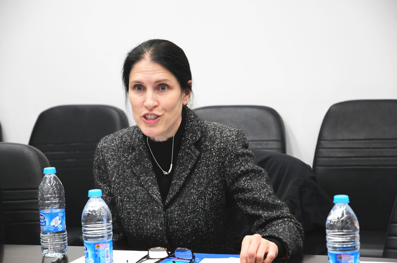 龚关副院长介绍学院情况 Kathleen McGarry教授介绍了美国加州大学洛杉矶分校(UCLA)经济系的概况和硕士项目情况,并重点谈了对硕士项目招生的基本要求。她表示,希望双方能不断加深了解,探寻更多合作交流机会。
