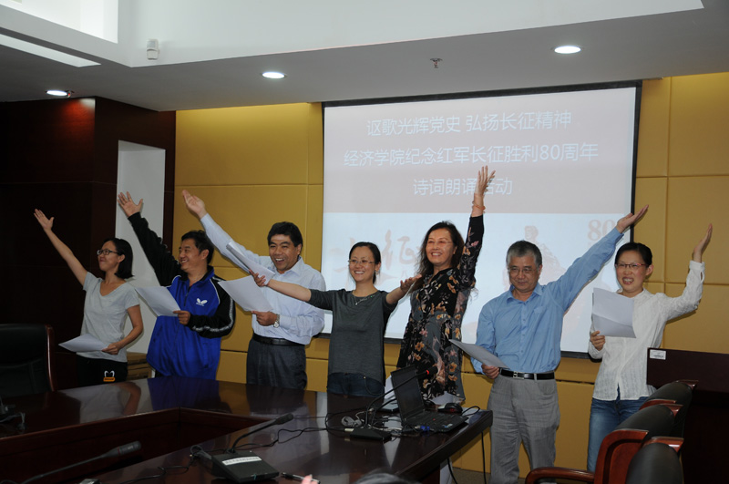 通过对经典长征诗词的重新学习和深情朗诵,经济学院教职工党员缅怀了革命先辈的丰功伟绩,弘扬了中华民族自强不息的民族品格和精神。同时,也为我们今天践行社会主义核心价值观,铸就“中国梦”汇聚了磅礴力量。 (供稿:刘伟 供图:李媛 编审:陈旭东) |