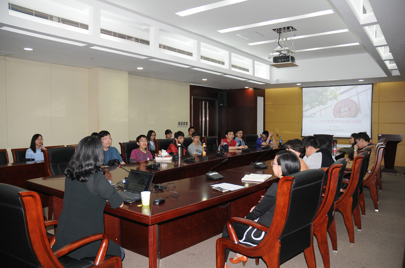李奕滨校友于1990年考入我校经济学系,1994年获学士学位;后进入同济大学经济管理学院获经济学硕士、博士。她现任同济大学经济与管理学院经济与金融系副教授、同济大学EMBA中心主任。曾在中国商学院“双创”人才培养与发展高峰论坛等多个主题论坛中担任发起人或主讲人,并在《金融研究》等国内权威期刊发表10余篇论文,主编《货币银行学》《新编西方经济学(第二版)》《国际经济合作概论》等著作。20年后满载盛誉归返母校的她,结合自己的切身感受, 与学弟学妹们分享了VUCA时代需要怎样的商业领袖。 首先,李奕滨校友解释了VUCA的概念:即易变性(Volatility)、不确定性(Uncertainty)、复杂性(Complexity)和模糊性(Ambiguity)。同时,她用丰富的数据和生动的案例向同学们展示了经济周期论对现行经济的影响,以及经济环境的不确定性对企业的经营提出的挑战。她强调“没有伟大的企业,只有时代的企业”。在当前的环境下,企业应该将此VUCA变成彼VUCA,即 Vision(远见)、Understanding(了解)、Clarity(清晰)和 Agility(敏捷)。紧接着,她向同学们提出了几点建议,引导大家在“VUCA”时代争做时代的弄潮儿,从激烈的竞争中脱颖而出。其中包括:了解国内国外环境,富有远见,不应片面追求“功利”和“务实”目标;培养对行业真实的热爱;活到老学到老,生命无息,学习的脚步不止;勇于尝试,大胆创新;培养同理心,学会为他人考虑;注重分享和团队精神等等。最后李奕滨校友总结到,要成为一个卓越的商业领袖,不仅要具备常人不具备的毅力、野心和热情,还要敢于冒险,善于抓住时机。 在提问环节,李奕滨校友就同学们提出的问题进行了详细的解答。学生代表献上了学校百年校庆吉祥物御风。近2小时的讲座内容详实、案例生动,让在场同学都感到受益匪浅。