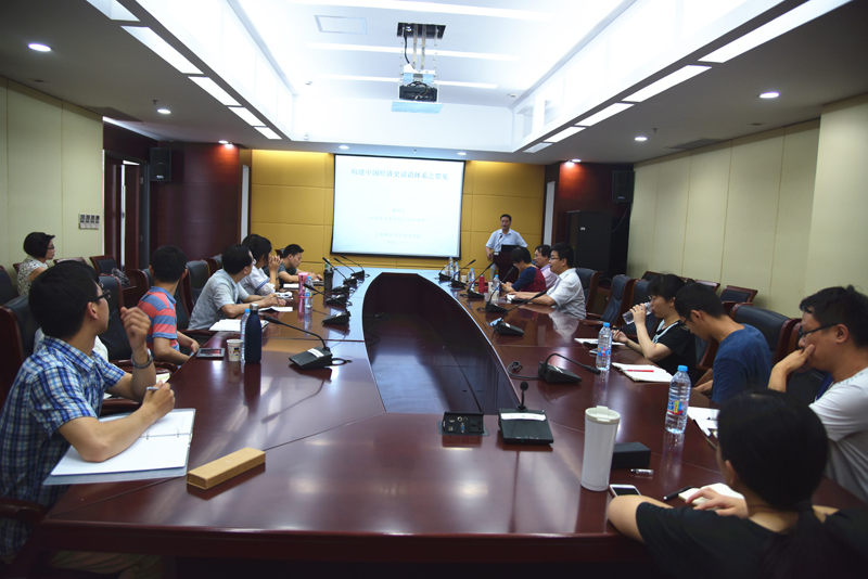 2017年7月7日上午,中国经济史学会会长、中国社会科学院经济研究所研究员、上海财经大学经济史学系特聘教授魏明孔应邀做客上财经济史学讲坛第十八讲,在经济学院710会议室为我校师生做了一场题为“构建中国经济史话语体系之管见”的学术讲座。 讲座由上海财经大学人事处处长、经济史学系系主任程霖教授主持。经济学院党委书记王昉研究员、经济史学系副系主任燕红忠教授、经济史学系师生以及多位对讲座议题感兴趣的校内外学者聆听了本次讲座。
