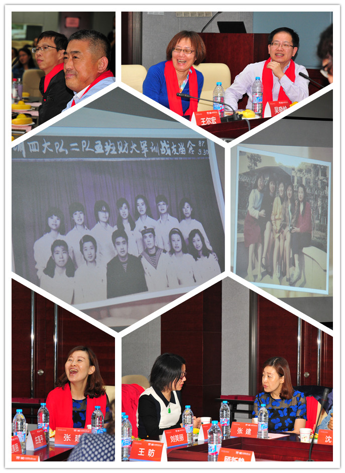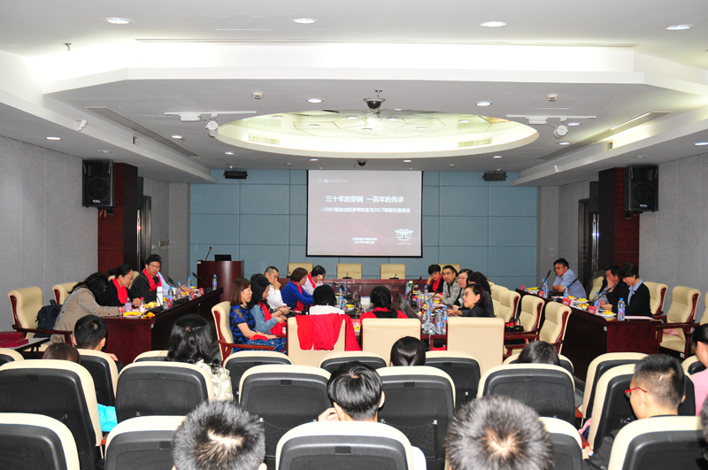 座谈会伊始,金晓茜副书记代表学院热烈欢迎1987级政治经济学校友回家。政经班顾新静校友代表1987级全体校友首先发言。顾新静校友叮嘱学弟学妹们,大学期间应以学业为重,努力提高自身的情商和软实力,做一个全面发展的人,与此同时,不忘常与父母联系,给予周围人爱与关怀。接着,政经班包锦阔校友代表87级政经班发言,他通过“一不两要”来劝勉同学们,“一不”即目标不要定得太高,一步一个脚印踏实努力才是根本;“两要”即读书一定要努力,还要活到老,学到老,不能轻易错过大学这一宝贵的学习时间;一定要学会明辨是非,在信息繁杂的社会里找准方向。师资班校友代表袁红以“30年的回忆”为题带领在场师生一同回顾30年前在财大校园温馨生活的点滴,一张张老照片是时间的见证,一件件旧事物都是青春的印迹,袁红校友声情并茂的分享感染了在场的每一个人。师资班校友代表罗声明则与同学们一共展望未来,2017级新生是年轻的一代,未来将有无限可能性,无论做哪一种选择都应该用知识沉淀自己,学会包容、谦让、分享,与人共进。最后,政经班王尔宏校友表示,母校不仅给了我们知识和营养,还有骄傲和自豪,希望今后和学校、学院的联动更加紧密。