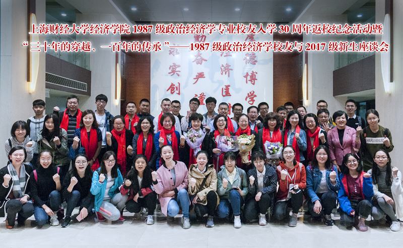 最后,以“三十年的穿越、一百年的传承”为主题的1987级政治经济学专业校友入学30周年返校纪念活动在校友和2017级新生代表的大合影中圆满落幕。王昉书记表示,将校友返校活动与新生思政课相结合是学院创新思政课的新尝试,校友们对母校的拳拳之心、感恩母校的哺育之恩、和大家分享的人生感悟等,都为同学们上了生动地一课,作为新百年的上财学子,同学们更应奋发图强、传承创新,承担起时代赋予的使命和职责,为实现中华民族伟大复兴的中国梦贡献力量。 (供稿:何清、刘伟 供图:何清、史华旭、刘伟 编审:王越男 ) |