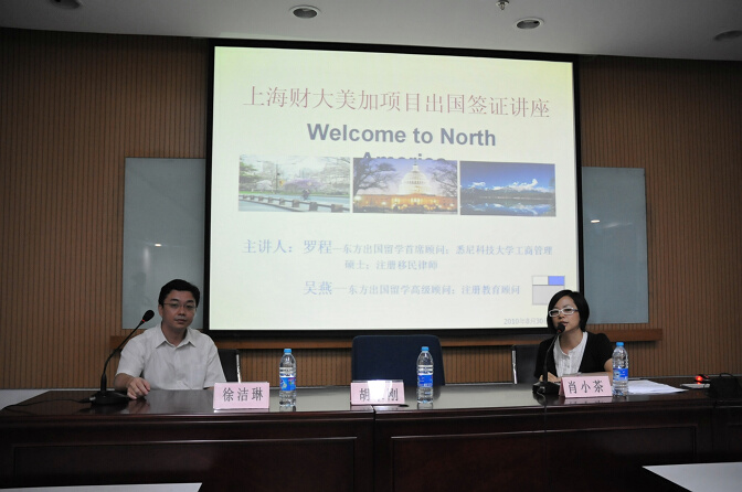 东方出国留学首席顾问罗程和高级顾问吴燕做出国签证讲座