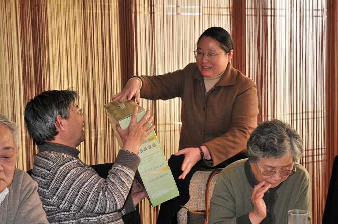 办公室主任张冬梅老师代表学院给寿星送贺礼