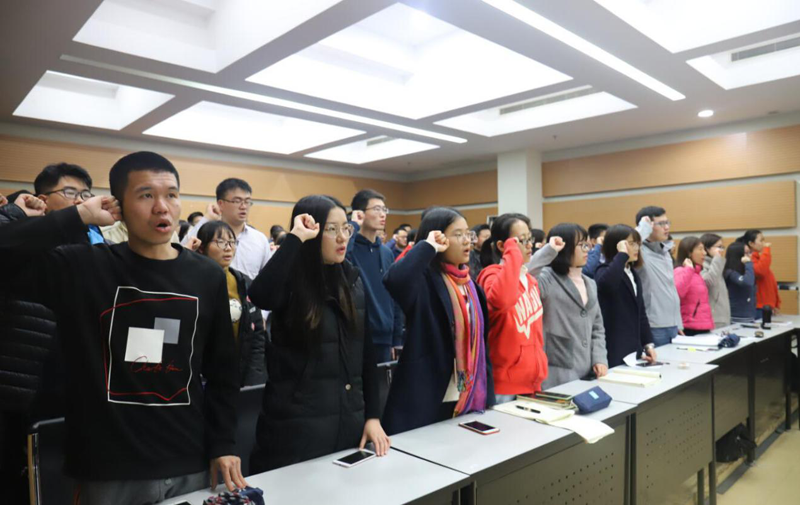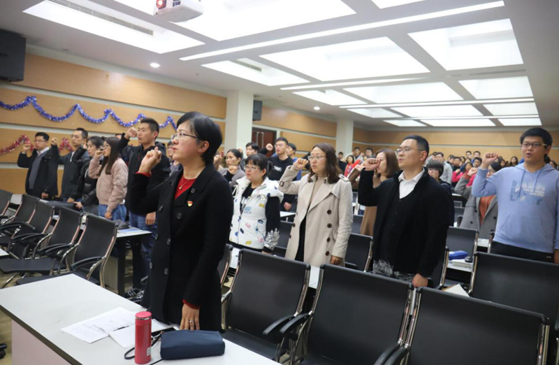 活动最后,全体与会师生党员一起重温了入党誓词。师生党员们表示在学思践悟中不忘初心,传递榜样力量,方能砥砺前行,与时俱进。