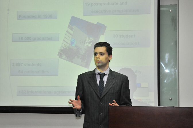 法国南特高等商学院国际招生项目顾问Eduardo RAMOS介绍了南特高商基本人文环境、学校特色,留学法国的奖学金申请等