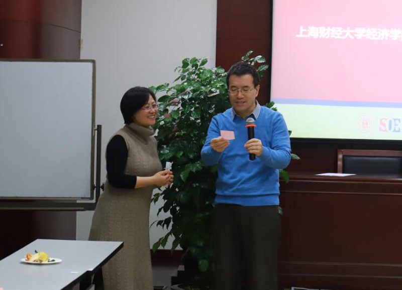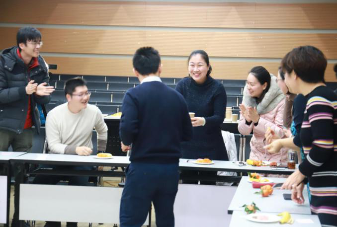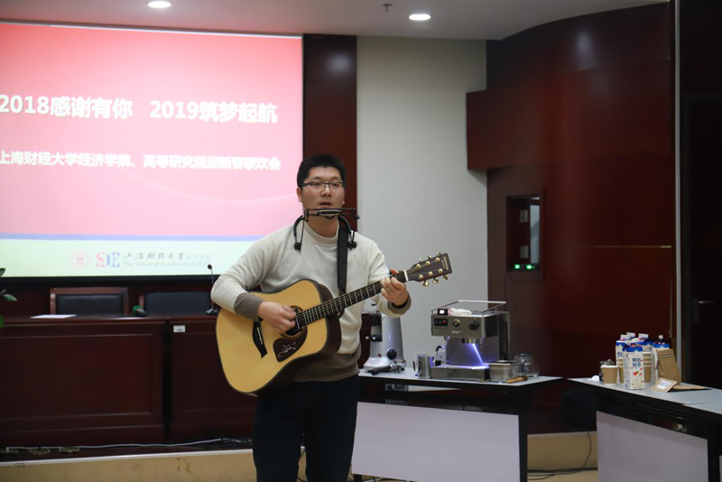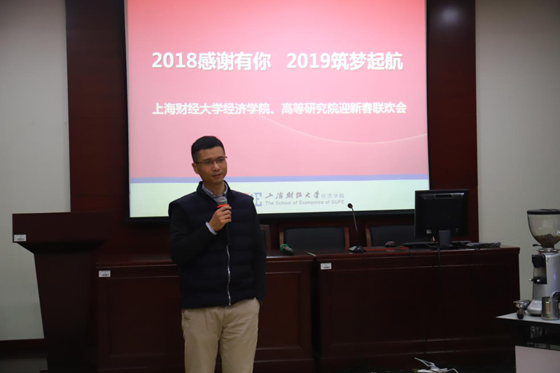 经济学院常务副院长夏纪军老师首先致辞,回顾2018,对大家的努力工作表示感谢,展望2019, 为大家送上美好的祝愿。他表示学院是一个BIG FAMILY,学院的发展离不开每一位学院老师的参与和支持。同时,夏老师也祝福学院教师吕振通、办公室主任畅丽君、本科生教务秘书万晓旻等即将离职三位同事一切顺利,前程似锦。