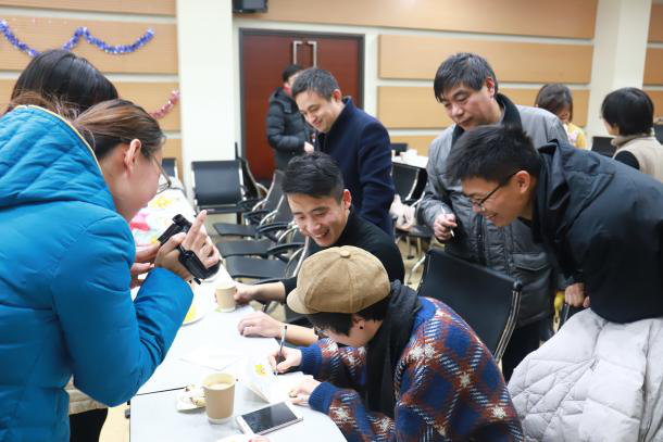 与会老师最后共同合影留念,分享咖啡蛋糕,在书写祝福和依依惜别中联欢会落下帷幕。