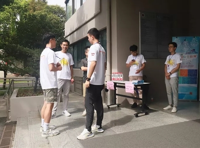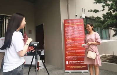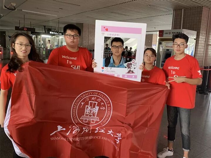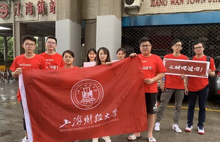 下图为我院志愿者们身穿红色T恤,在地铁3号线的江湾镇站出口为新生们送上来自上财经院人的问候