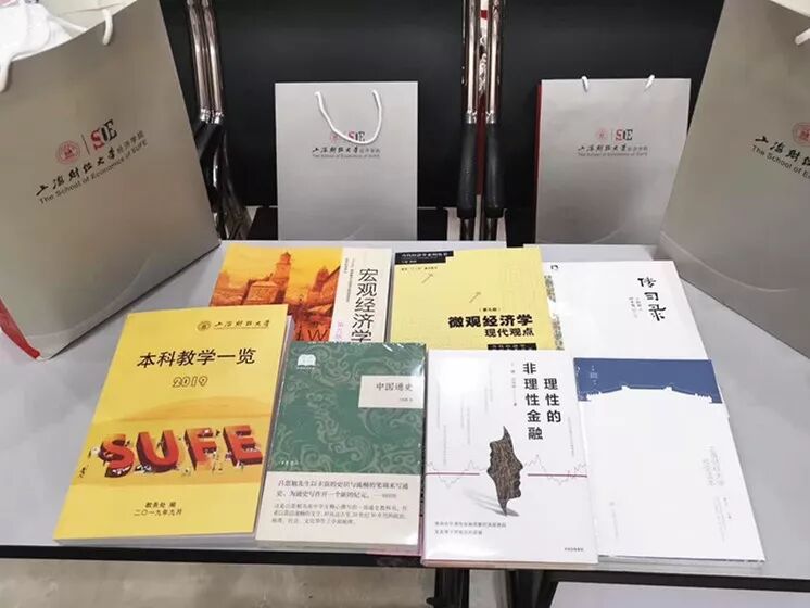 有一种厚重,叫经济学院迎新!除学校统一发放的《上海财经大学校史读本》外,经济学院还为新生精心准备了《宏观经济学》《微观经济学》《理性的非理性金融》《中国通史》《传习录》5本书籍!此外,今年还为新生准备了洗发水,沐浴露等生活用品。再加上各项其他材料等共计29项,粗略算下来大礼包重达20斤!