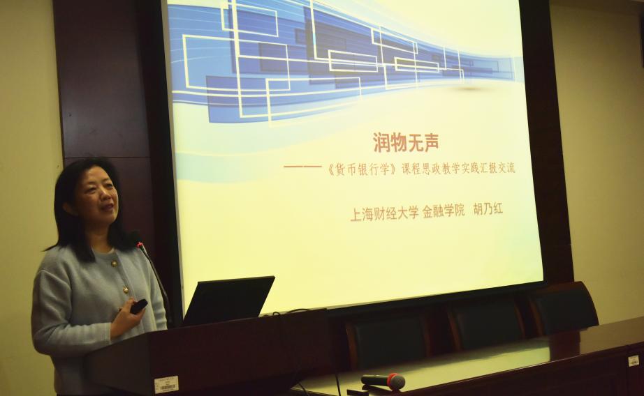 胡乃红教授作题为《润物无声——<货币银行学>课程思政教学实践汇报交流》的专题报告。“课程思政首先要有过硬的专业基础;课程思政要与专业课建设有机融合;课程思政只有进行时没有完成时。”报告伊始,胡教授便清晰明白地表述了对课程思政的理解。随后,她分别从《货币银行学》课程总体介绍、课程思政实践以及教学心得与体悟等三方面展开论述,她谈到,作为上财金融学院的传统优势学科,《货币银行学》这门课程历史悠久,自1931年在银行理财系开设该课程以来,至今已有92年历史,可以说它凝聚了几代上财人的心血与成果,建设发展至今,团队成员始终坚持不懈坚持创新,该课程团队核心成员及团队集体已先后取得多项国家级、省部级以及上海市的精品课程、教育教学类的奖项与荣誉等,而作为课程负责人的她本人也连续22年蝉联上海财经大学“我心目中的好老师”荣誉称号。