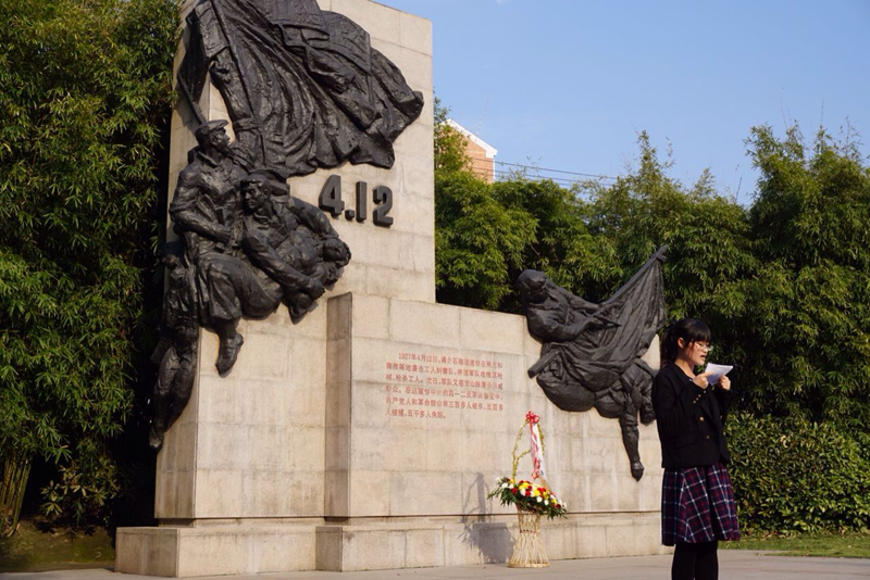 (我院学子作为党校学员代表在龙华烈士陵园演讲)