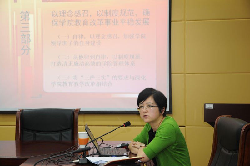 2015年7月8日,经济学院在710会议室开展了“三严三实”专题教育党课,经济学院党委书记王昉做专题报告,学院教职工党员代表及学生党员代表参加了学习讨论。