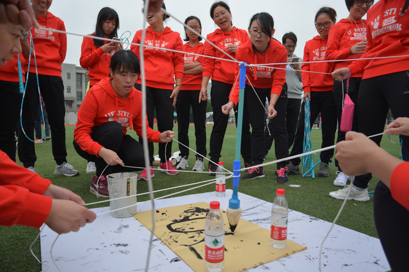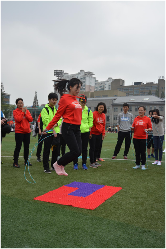 9时30分起,学生各类田径项目和教职工趣味运动项目分别展开。不同于往日严肃规整的运动会形式,教职工趣味运动包括陆地“风火轮”、指压板跳绳、快乐铅笔等极具趣味性的运动项目,操场上充满欢声笑语。在陆地“风火轮”比赛中,经院队员群策群力、以坚持不懈的精神完成比赛;在指压板跳绳比赛中,15名队员团结一心、凭借顽强的毅力赢得阵阵好评;在快乐铅笔比赛中,2组队员配合默契、精准潇洒地在纸上书写了“SUFE”。我院参赛教师代表纷纷表示,通过运动会能极大地增进同事之间的交流,也让身心得到放松。