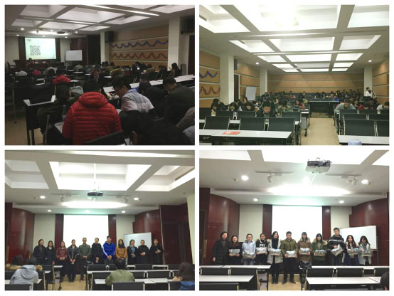 为了现场查看各支部党员的学习效果,学院提前准备了《经济学院党的十九大报告&新党章理论知识小测验》电子试卷。通过现场答卷、查看得分,学生党员更好地巩固了近期学习党的十九大精神的理论知识。经济学院党委副书记金晓茜为在此次理论知识测验中排名前20的同学颁奖,鼓励大家坚持学原文、读原著,全面系统学、联系实际学、带着问题学、不断跟进学,领会掌握基本精神、基本内容、基本要求,做到学而信、学而思、学而行。