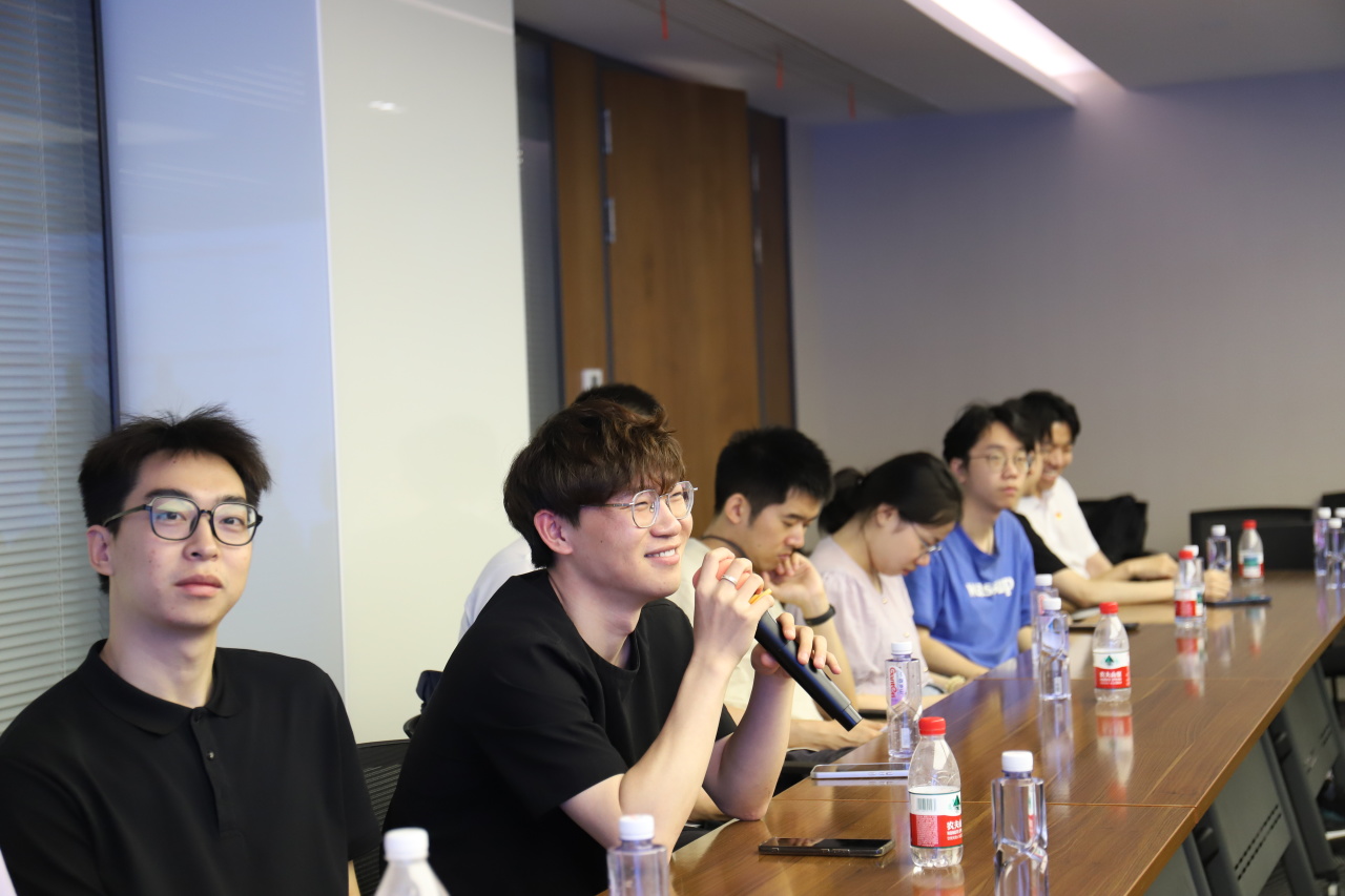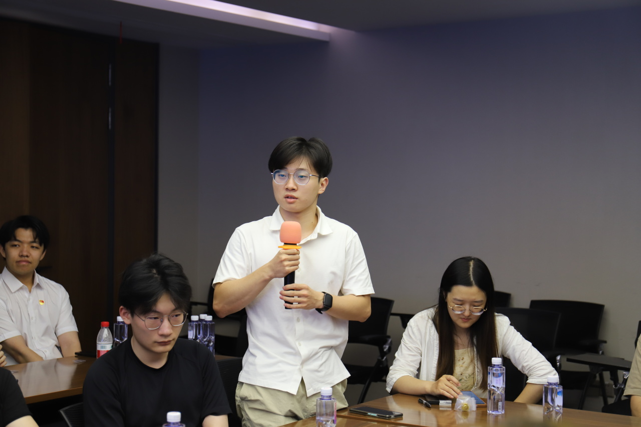 营业部支部委员、业务骨干陈铮详细介绍了支部情况,并了解了学生支部的需求与活动开展情况。侯文浩书记表示,支部的共建活动此前主要聚焦金融同业机构,与高校开展共建尚属首次尝试。期待通过与学生支部合作,探索“理论联学、实践联动、人才联育”的党建新模式,将党的政治优势、组织优势转化为校企协同育人的发展优势。