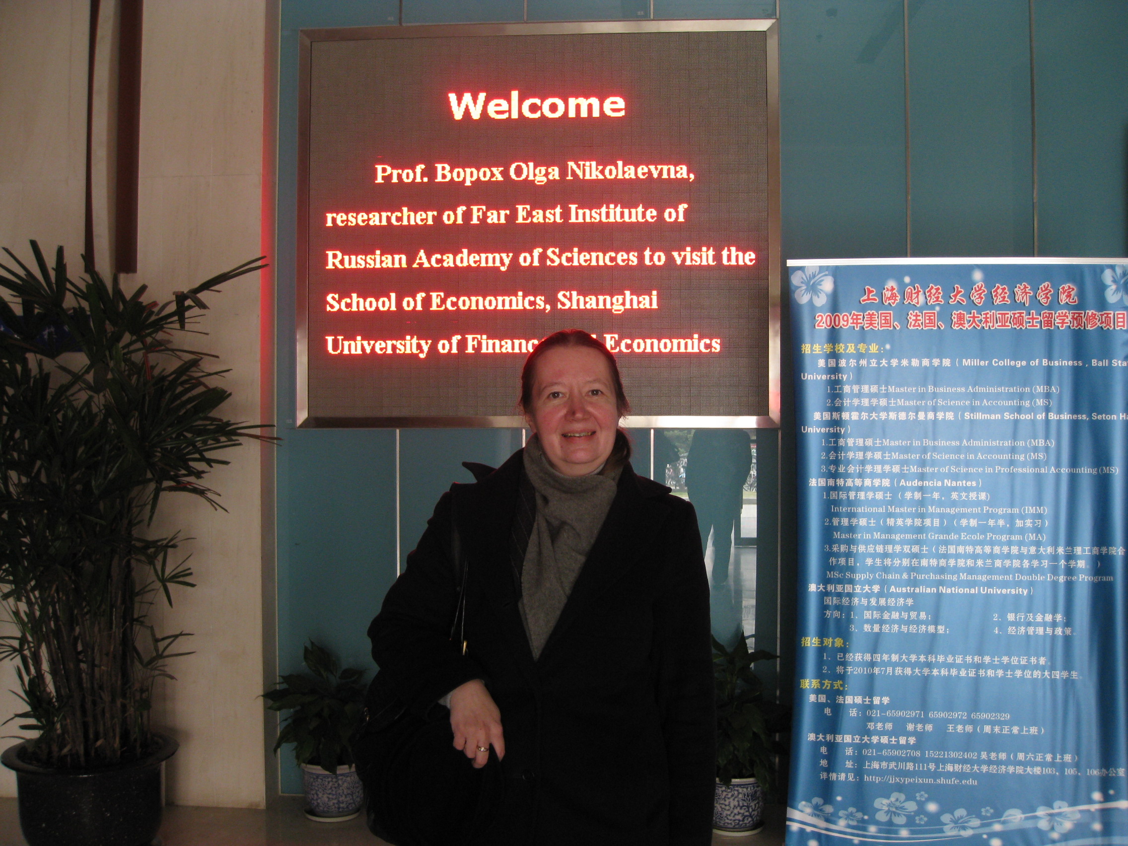 2009年11月18日,俄罗斯科学院远东研究所研究员Olga N BOROKH 博士来我院交流访问。俄罗斯科学院远东研究所是俄罗斯著名的战略研究机构,拥有多名俄罗斯国家科学院院士,在国际上的中国问题研究领域享有很高的影响和声望。我院党委书记、中国经济思想史与经济史研究中心副主任程霖教授和高等研究院院长助理王昉副研究员热情接待了来访客人并与其进行了座谈。 Olga N BOROKH 博士主要研究中国近现代经济思想史,尤其对民国时期的经济思想十分感兴趣。。程霖教授和王昉副研究员应邀就我校及我国中国经济思想史研究的历史与现状、研究方法与研究发展趋势、马克思主义经济学及西方经济学说在我国的引进、传播、运用与发展等问题进行了详实系统的介绍,并邀请她参加将于明年举办的中国经济思想史第十四届年会。Olga N BOROKH 博士对我院的盛情接待表示感谢,并希望今后双方能保持联系,增进学术交流与合作。