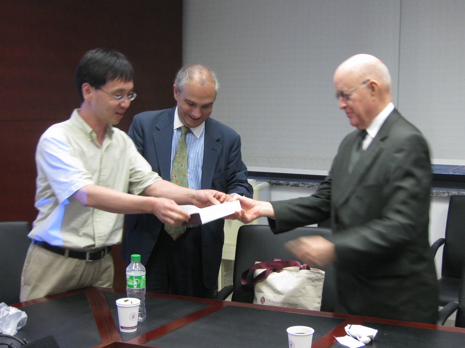2009年9月23日,美国福特汉姆大学商学院院长Robert F. Himmelberg和副院长 Ilhan Akbil一行来我院访问,龚关副院长与来访客人亲切会谈,双方共同探讨了在硕士项目上的合作以及在高端培训方面合作的可能性。