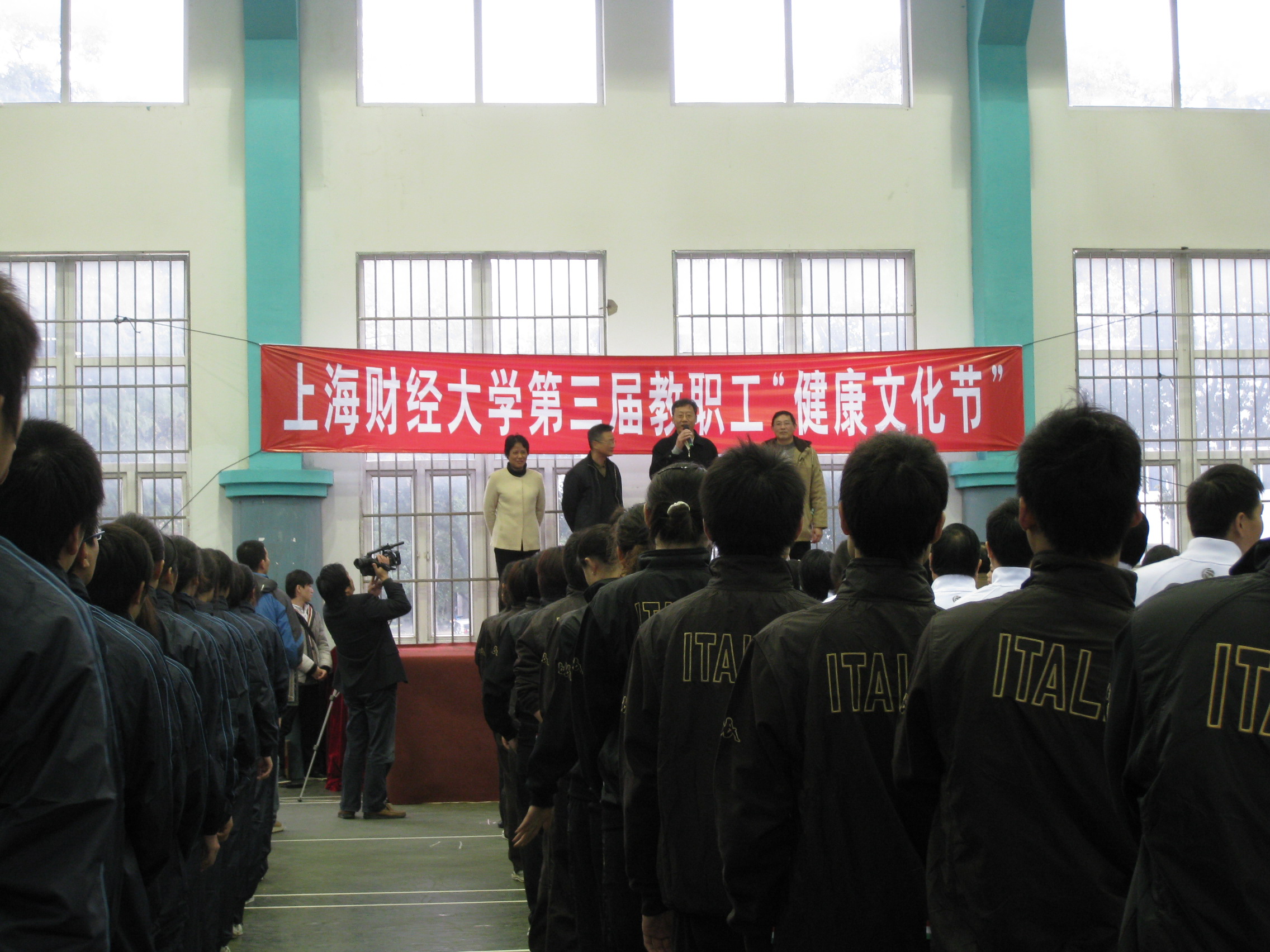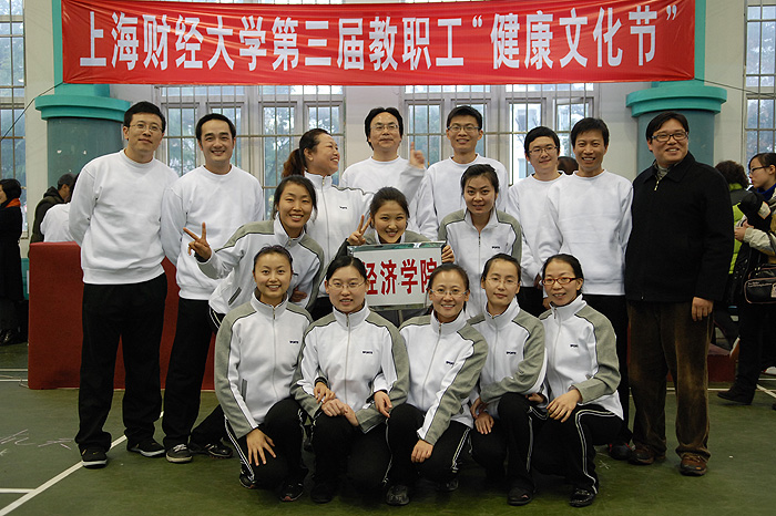 ,上海财经大学第三届教职工“健康文化节”在校羽毛球馆盛大开幕,经济学院代表队以