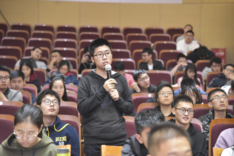 吴亚东校友从自己的亲身经历谈起,回顾了自己在读书、工作及创业期间的点滴往事,并通过“你是谁?为什么来到了这里?未来打算去哪里?”等3条主线,向在座同学们分享毕业后走上创业道路的人生体悟与从业见闻等。演讲过程中,吴亚东校友结合企业经营之道,穿插讲述自己对于中美贸易、创新创业潮等问题的思考与探索。