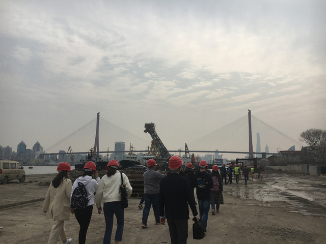 3月26日下午,我们来到了行程第一站——上海水利杨浦滨江项目部现场,开始校友走访之旅。上海财经大学合作发展处附明伟老师经济学院校友会副秘书王越老师分团委书记、本科辅导员王蔚老师以及本科生17人参加走访在杨浦滨江项目部施工现场,挖掘机作业施工的隆隆响声里,上海水利杨浦滨江项目部经理邢怡君给同学们做了详细的介绍。他从老码头的修复工程入手讲述景观项目的整体建设情况他介绍,“作为杨浦滨江延伸段项目,按照总体施工要求,对现场施工技艺要求很高,按照‘修旧如旧’修复原则,结合码头的实际特点开展操作。”同学们跟随邢经理指引,戴上安全帽,切身感受施工现场工人们密集的作业,也对将要完工的杨浦滨江延伸段工程充满了期待。
