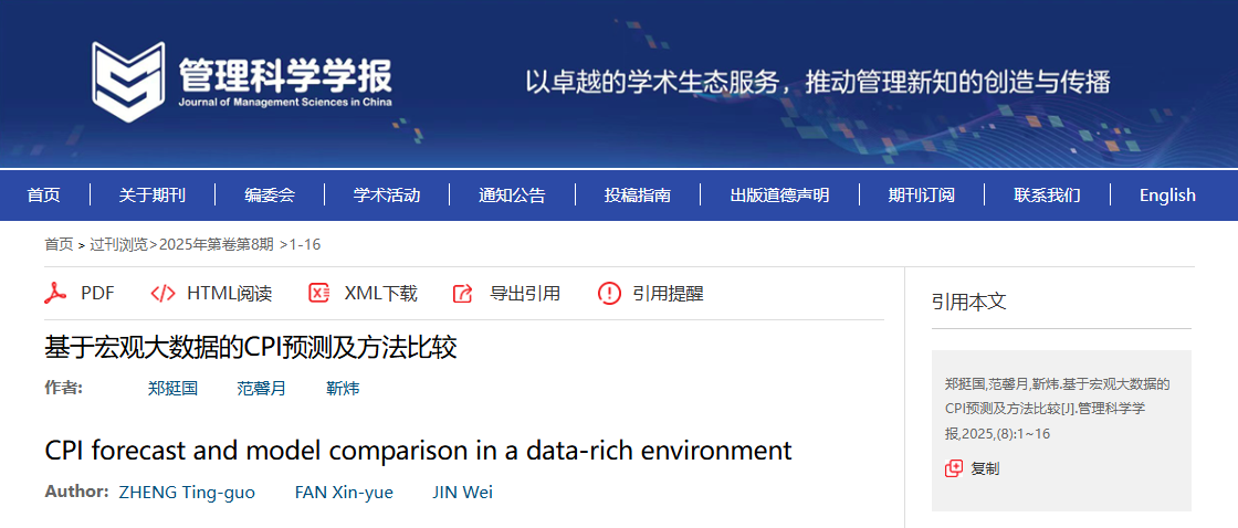 范馨月,数量经济学博士,上海市晨光学者。现任上海财经大学经济学院讲师,研究方向为宏观计量经济学,文本分析,宏观经济监测预测,大数据建模方法及应用。近年来在International Journal of Forecasting、Journal of Forecasting、《经济研究》《世界经济》《管理科学学报》等重要刊物上发表多篇论文;主持上海市晨光计划项目,上海市人工智能促进科研范式改革、赋能学科跃升计划项目,教育部数理经济学实验室开放项目,作为核心成员参与教育部人文社会科学重点研究基地重大项目、国家社会科学基金重大项目、国家自然科学基金面上项目、全国统计科学研究重点项目等重要课题。