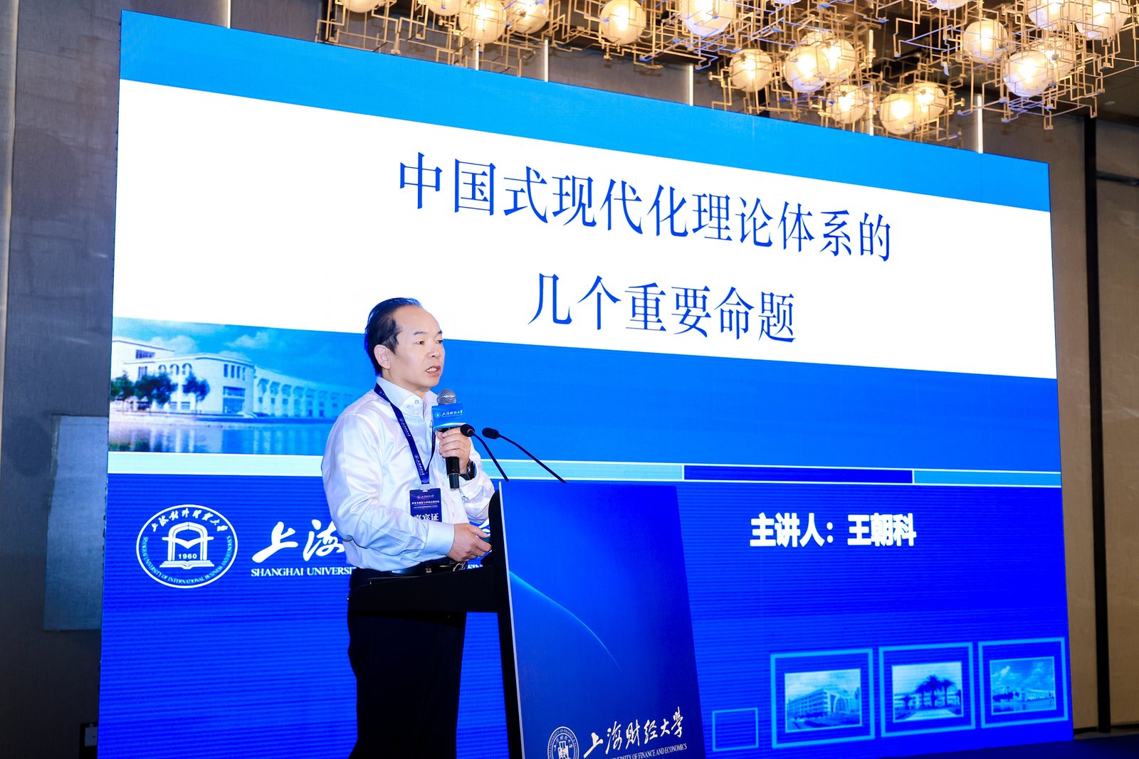 上海对外经贸大学马克思主义学院王朝科教授作题为《中国式现代化理论体系的几个重要命题》的报告,他立足历史基准和制度基准,阐述了中国式现代化理论体系的若干重要命题,包括:中国式现代化以党的领导为政治条件,以党推动生产方式革命为决定力量,以发展生产力为核心主题,以创造人类文明新形态为中国特色,以强国建设、实现中华民族伟大复兴并最终实现共产主义为历史使命。