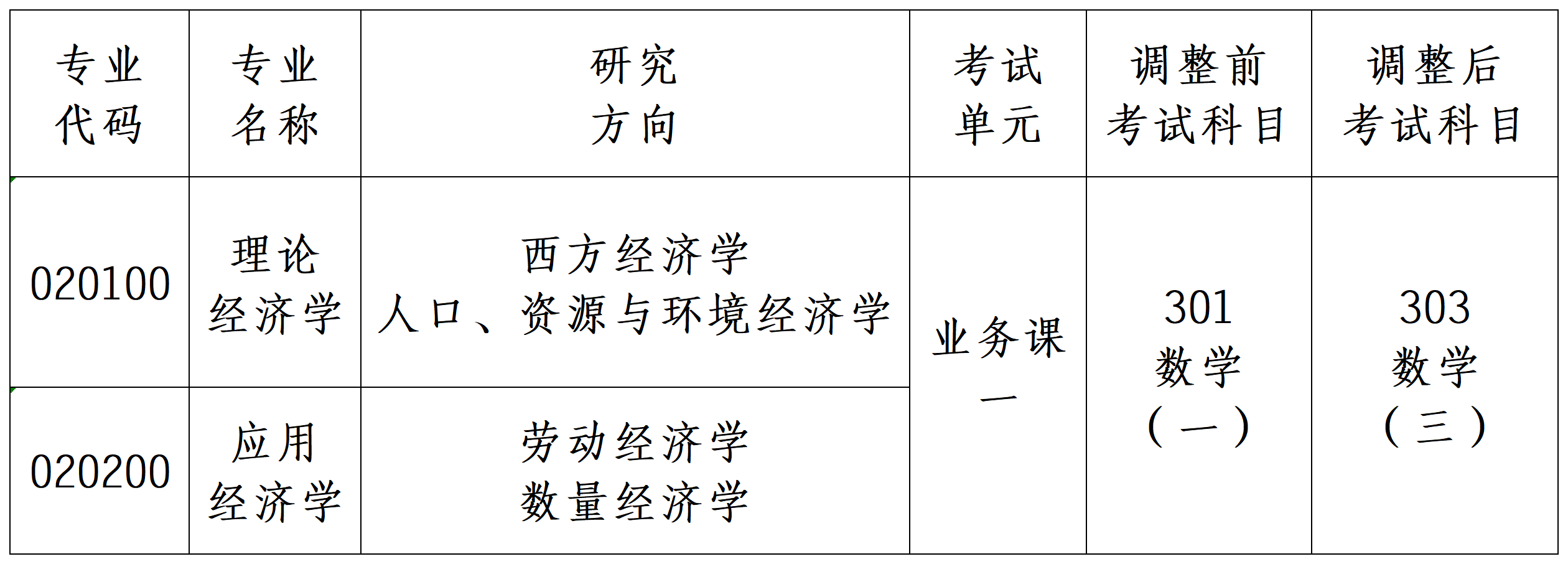 经济学院关于调整2027年硕士研究生招生考试(初试)部分学科专业考试科目的公告