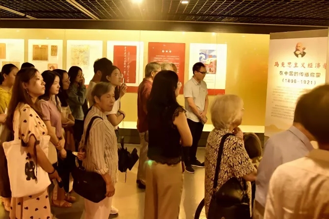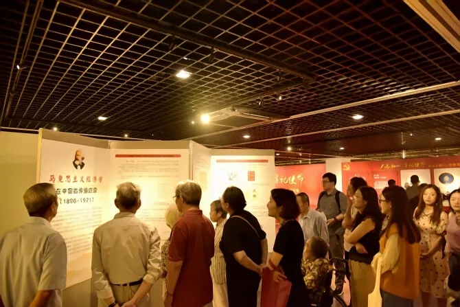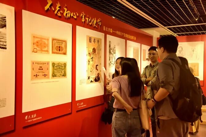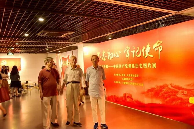 座谈会前,学生党员陪同老教师们走进学校校史馆,参观刚刚开幕的《不忘初心,牢记使命:伟大开端——中国共产党创建历史图片展》和《马克思主义经济学在中国的传播启蒙(1896-1921)》两个展览,回顾那段马克思主义在中国传播和发展的历史,也重温属于他们的峥嵘岁月,回溯上财百年的筚路蓝缕。