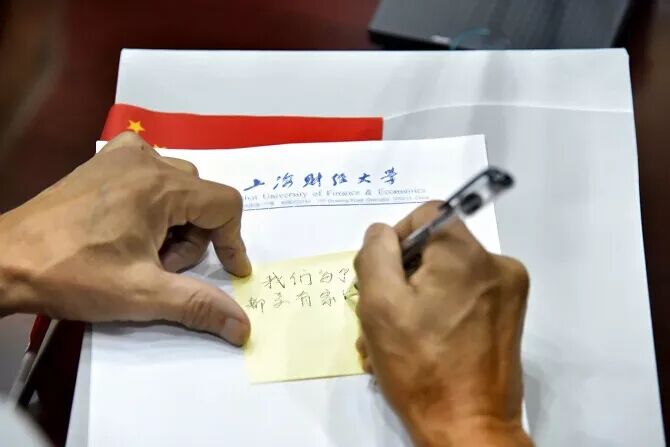 接下来,老教师和同学们纷纷拿出纸笔,写下了对学校的美好祝福,也抒发了对祖国的浓浓爱意,将心中最美的诗意献礼新中国70周年华诞。