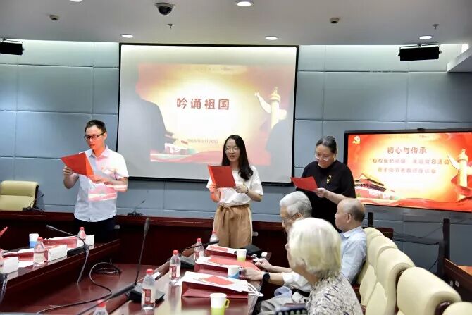 随后,大家一起高歌《东方红》以及《我和我的祖国》,通过两首代代传唱的经典歌曲,老教师和同学们打破了时间的代际,建立起沟通的桥梁,将本次活动推向了高潮。