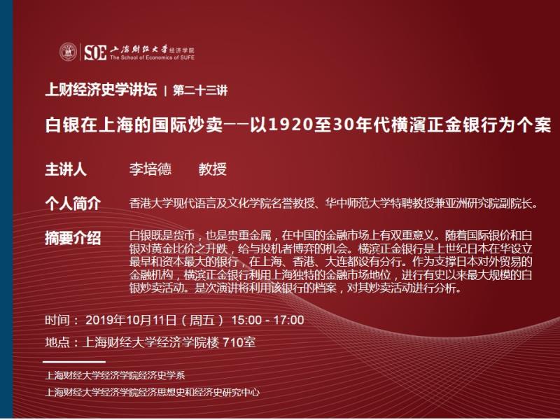 上财经济史学讲坛第二十三讲