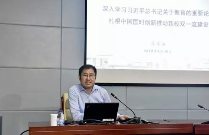 蒋校长首先带领大家系统学习了习近平总书记关于“双一流”建设的重要论述,他从高等教育在落实立德树人根本任务中的重要地位出发,详细阐述了为什么党和国家要加快一流大学和一流学科建设,实现高等教育内涵式发展。蒋校长在讲课中强调,读原著学原文悟原理对广大党员提升理论素养、提高党性修养、开阔眼界视野、养成战略思维非常重要,大家应认真学习习近平新时代中国特色社会主义思想,特别是习近平总书记关于教育的重要论述。