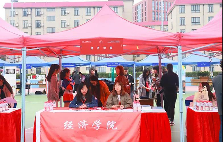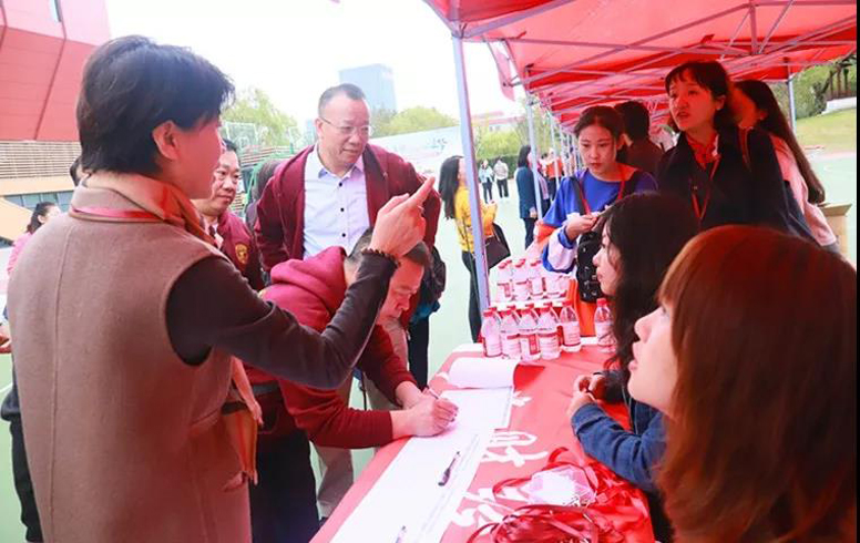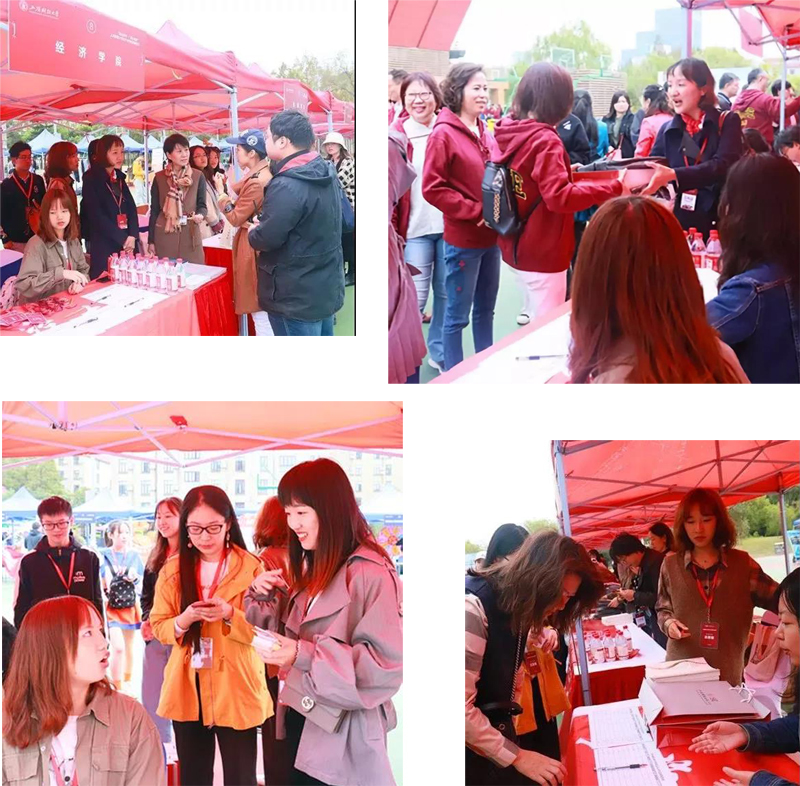 清晨7点30分,国定体育馆广场前8号经济学院展台前,校友工作的老师与志愿者学生们已经就绪,等候大家返校。在这里,校友们按事先通知的方位图找到自己的“家门”,进行签到,并领取一系列活动纪念品。