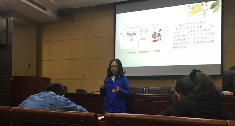 随后,王蔚老师表示非常赞赏同学们对院服设计大赛的积极参与和充满创意的设计想法,也十分支持和期待活动的继续举办。在充分肯定同学们设计作品的同时,王蔚老师也强调,院服不仅仅是一件衣服,更是一张经院的名片,承载的是经院的精神和经院学子的形象,院服的设计应该注重元素寓意的传达,在具有普适性、适合每一位同学的前提下,努力展现出经济学院的特色和传统。