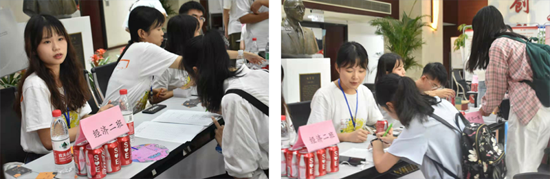 上午八点,2019级新生们带着初入大学校园的新奇与喜悦陆续来到了经济学院,在迎新工作人员细心的引导下有序地完成了报道、采访、签字、留影等活动。