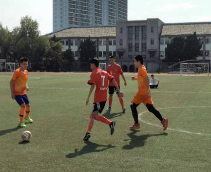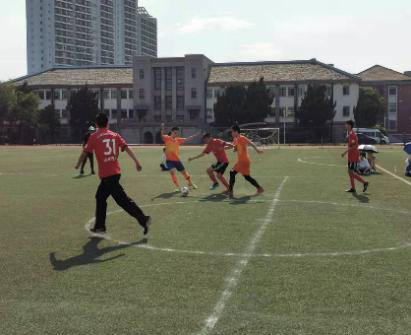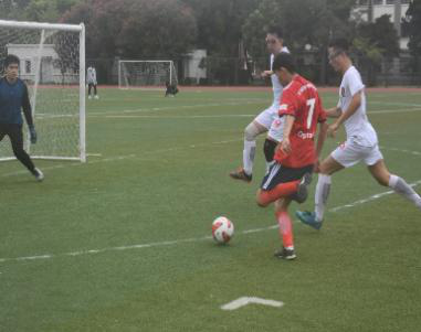 9月24日下午2:22,经济学院迎来了他们的淘汰赛对手外国语学院。上半场,对手利用一次反击率先破门,随后我方25号张益玮于左路连续突破后射门将比分扳平。